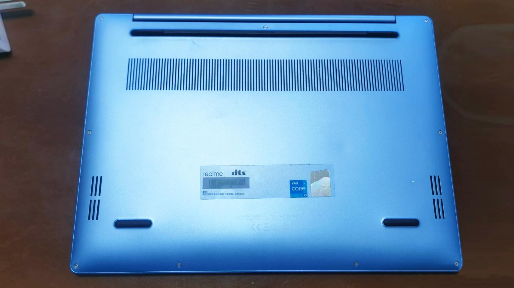 来到机身底部,其d面的设计也是大众脸。一块完整的金属底壳,做成了自然凹凸的纹理弧度,并非一些产品梯形面的布局,视觉上更加自然。在底壳居中靠上位置是realmebook增强版的进气孔,它做成了竖形的栅格纹,开孔细腻且狭长,排列整齐。对比下,机器的扬声器也是相同的工艺开孔,放在靠近掌托的区域,左右对称,上下两列。其余位置,在底壳边角处,均匀分布了机器的固定螺丝孔,还有三个橡胶防滑脚垫,没有其它结构布局。