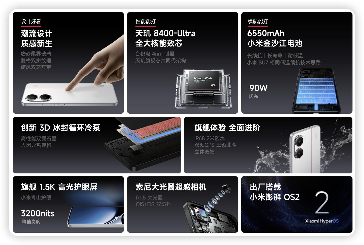 红米Turbo 4 Pro也是不辱使命拿下了开门红,而这背后自然是优秀的产品力,在友商还把金属中框当个宝的时候,红米Turbo 4 Pro直接来了波普及金属中框的操作,同时还带来了更加精致的外观设计,7550mAh超大电池和IP68&69防尘防水等内容,产品力算是直接拉满了。