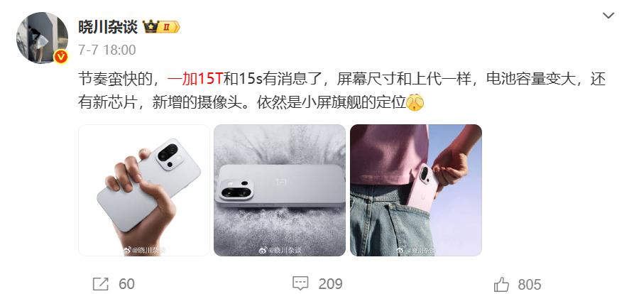 目前子系列只有一加13T这款小屏旗舰,但下一代开始其他子系也会有,然而一加下一代的小屏旗舰还会进行大幅升级,目前就爆料了很多亮点,在续航、拍照、性能等各方面都有大幅提升。
