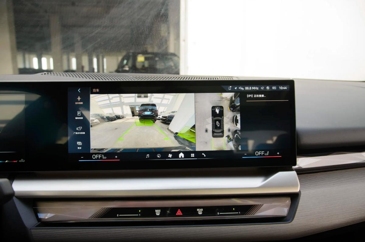 在市中心的拥堵路段,我特意体验了全新升级的智能配置。12.3英寸仪表盘与14.9英寸中控屏组成的曲面联屏本就有着较强的视觉冲击力,而全新版本的iDrive系统依靠骁龙8155P芯片的支持,在响应速度上有了较大提升。车机除了常规的功能应用之外,在主副驾都支持语音控制,我还特意尝试了“调低空调温度,播放爵士乐并避开拥堵”等复杂指令,系统能在大约3秒左右完成操作,不过不能进行可见即可说控制,与新势力还是有一定差距。