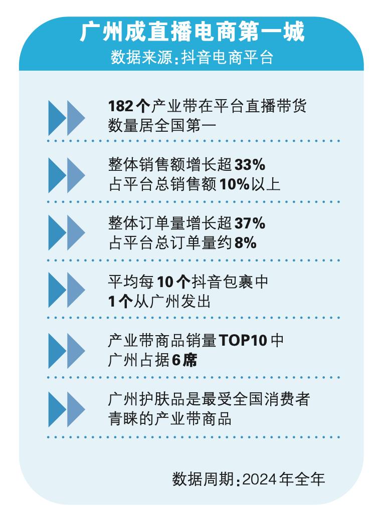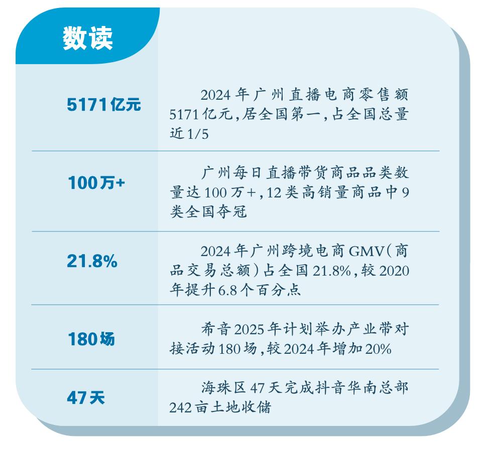 广州市统计局数据显示,2024年广州直播电商零售额达5171亿元;2025年上半年跨境电商贸易额突破千亿元,实现两位数增长,跑出广州“加速度”。