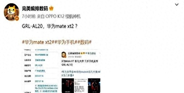 但前两天我刷到一个消息,是真的让我停下来仔细看了几分钟——华为Mate XT2入网了,三折叠回来了。