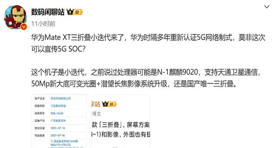 9月10日发布的华为Mate XT非凡大师,全球首款三折叠手机直接干到10.2英寸,展开薄得吓人,19999元的价格直接冲上热搜。
