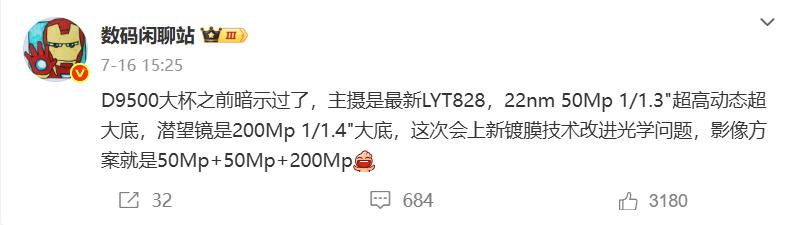 近日,数码博主数码闲聊站再度曝光了一款新一代旗舰手机的具体镜组规格,根据爆料内容以及评论区内容来看预计为 vivo X300 Pro。