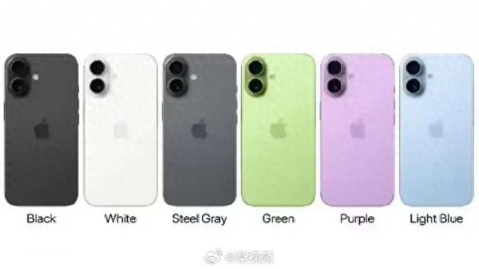 iPhone 17 基础款预估将提供黑色、白色、钢灰、绿色、紫色和浅蓝色六种颜色,其中黑色和白色是多年来 iPhone 的标配,而钢灰色将成为标志性颜色,另外三种颜色看起来笔 iPhone 16 标准版更淡一些。