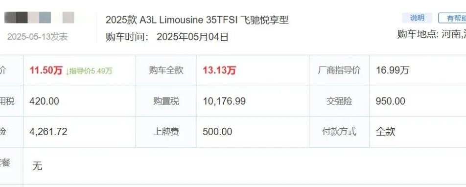 最近买车的朋友都在吵奥迪A3降价的事。从原来的二十多万掉到11万出头,确实够狠,跟雅阁这些B级车差不多价了。听说有人实拍订单才13万多落地,这价格比国产车高不了多少,但牌子是真豪华。