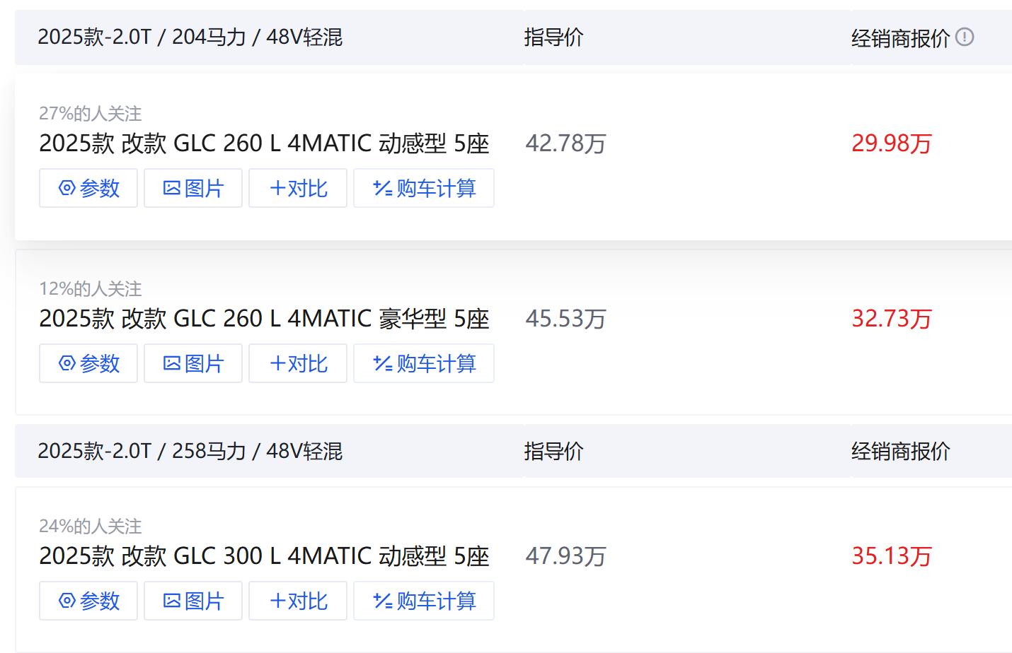 原因并不复杂,品牌是一方面的因素,另一方面还是因为这款车的性价比很高,请允许我用性价比这个词来形容奔驰GLC,我们都知道,受新能源车冲击,奔驰GLC的销量虽然稳住了,可是价格方面,确实也在不断地妥协,目前新车在市场上入门版降幅超过10万,起步价格仅为29.98万,这次可以说是真的是降不动了。