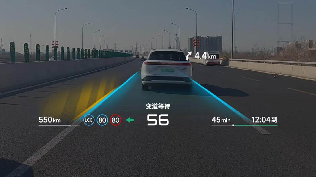 AR-HUD系统还与智能辅助驾驶完美结合起来,你想知道车技在想啥,它直接“画”给你看,比如车子想变道超车,光毯边缘会像呼吸灯一样泛起涟漪,提示“我在等机会”,要加速了,光毯前端会向前延伸出“冲刺”的箭头。这种“可视化意图”让司机用起来更有底,信任感自然就来了。