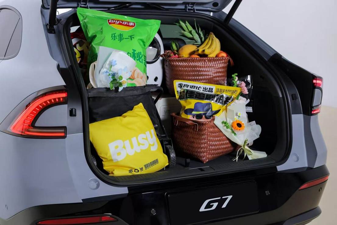 小鹏G7还是载物神器,42L的前备厢42L能水洗!露营回来沾满泥的鞋子直接扔进去,回家直接冲一冲,后备厢的空间有819L,实测塞进去2个28寸+2个24寸+1个20寸行李箱还有不少空余。要是把后排放倒,最大能扩展到2277L,搬家拉个小家具估计都行,后备厢盖板掀开,下面居然还有个巨大的隐藏储物格,自带卡槽立起来方便拿东西,还能变身小桌板腿!