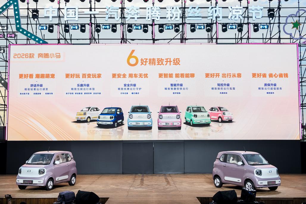 7月27日,中国一汽奔腾在长春捌壹岛举办粉丝纳凉节活动,期间正式上市2026款奔腾小马微型纯电动汽车。新车共推出5款车型,官方指导价区间为3.49万元至4.59万元。