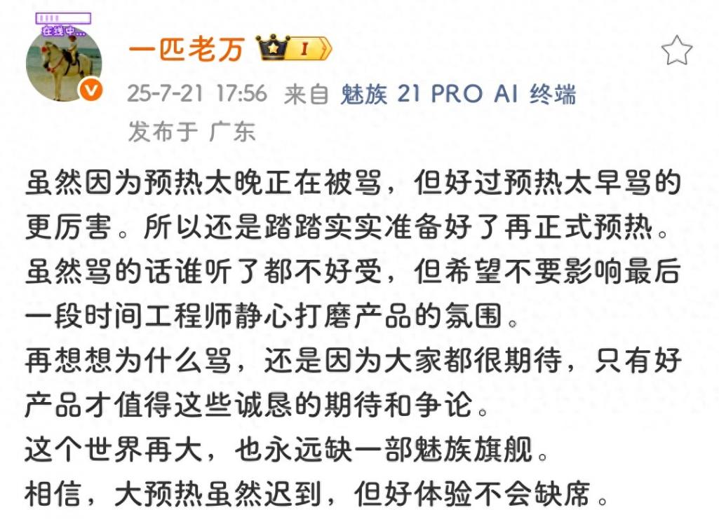 作为曾经国内销量排名前列的手机厂商,如今已是"珠海小厂",魅族在上半年的发布会就已经提前官宣了自己旗舰机型魅族22,然后到了7月份下旬,仍然没有开始正式的预热,这就遭到了众多魅友们的质疑,魅族负责人也就此事进行了正式回应。