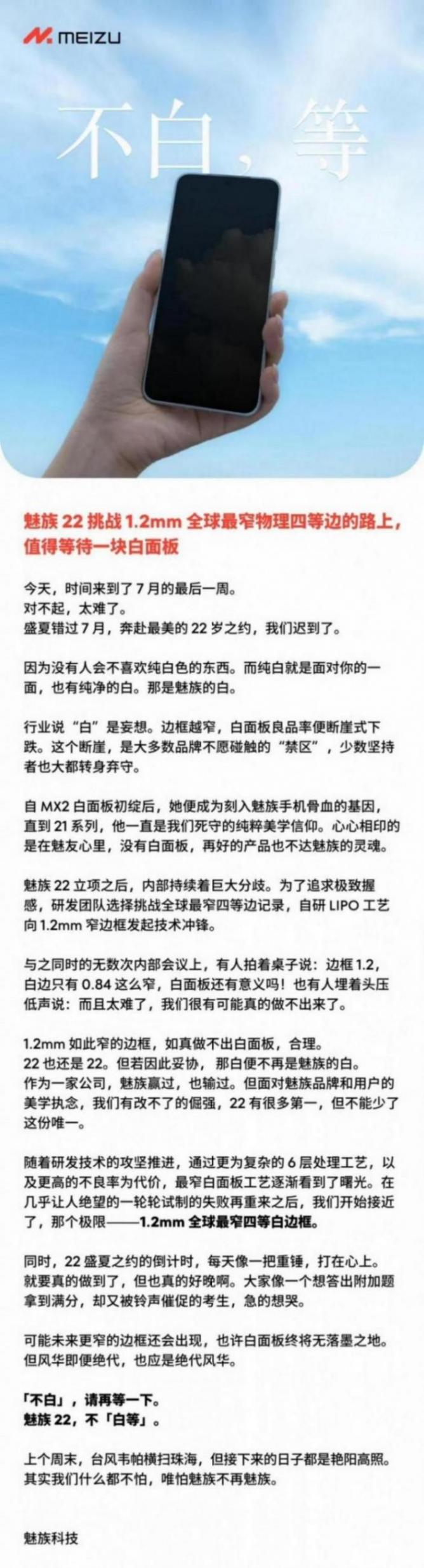 就在这个回应发出以后,就在近期,魅族终于迎来了魅族22的预热,并且展示出了第一张官方真机图。