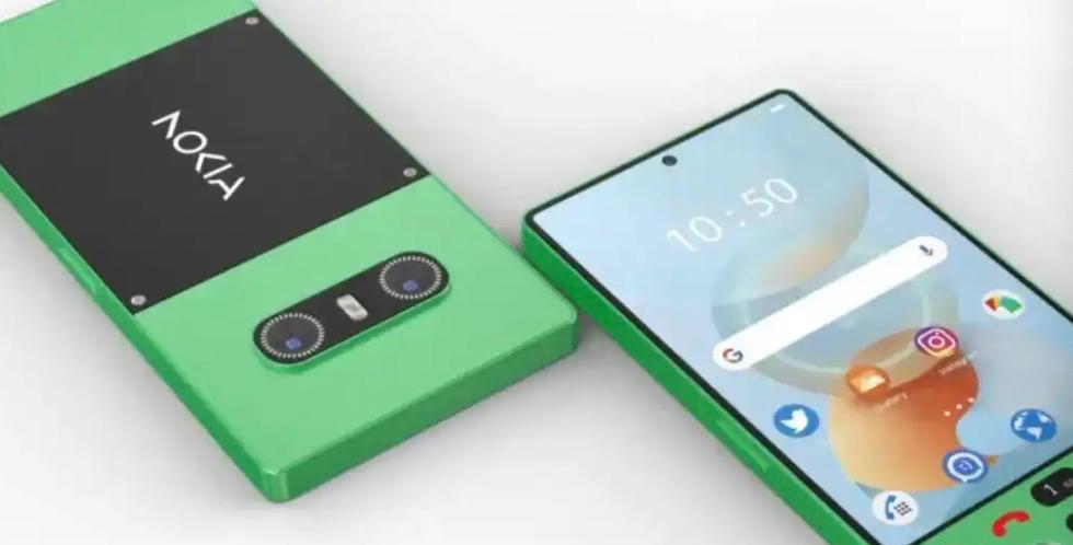 从后盖来看,新机采用拼接设计,上下的蓝色、绿色等配色大胆出挑,中间的诺基亚Logo鲜艳独特。后置搭载双镜头,闪光灯居中摆放,整体外观设计很有意思。