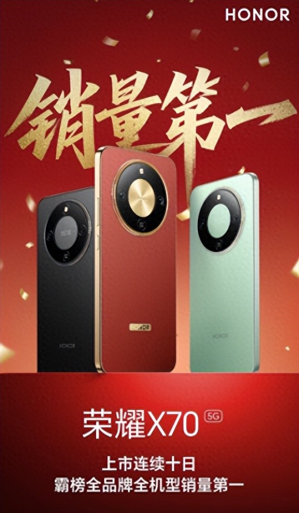 根据官方人员给出的统计数据,迄今为止,荣耀X70已经连续10日霸榜全品牌全机型销量第一,说实话,如此惊人的销售表现,确实是让很多人都没有提前预料到,但如今细想一下,以X70功能配置来看,连续霸榜十天也在情理之中,首先整个市场近期都比较平静,并没有太多新机出现,加上X70性价比本身就足够高,自然就能获得用户青睐。