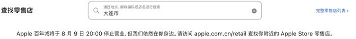 7月29日,苹果中国官网显示,AppleStore大连百年城店将于2025年8月9日20:00停止营业。据媒体称,这成为苹果中国首家关停的直营店。