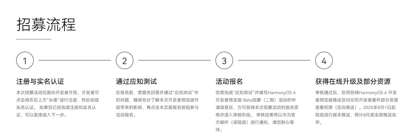 7 月 29 日消息,华为 HarmonyOS 6 开发者预览版 Beta 招募(二期)现正式开启。