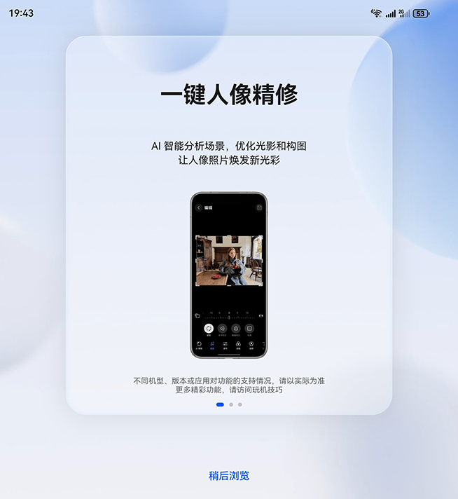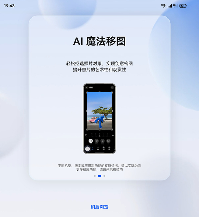 图库App持续提升AI能力,新增魔法移图与人像精修功能。