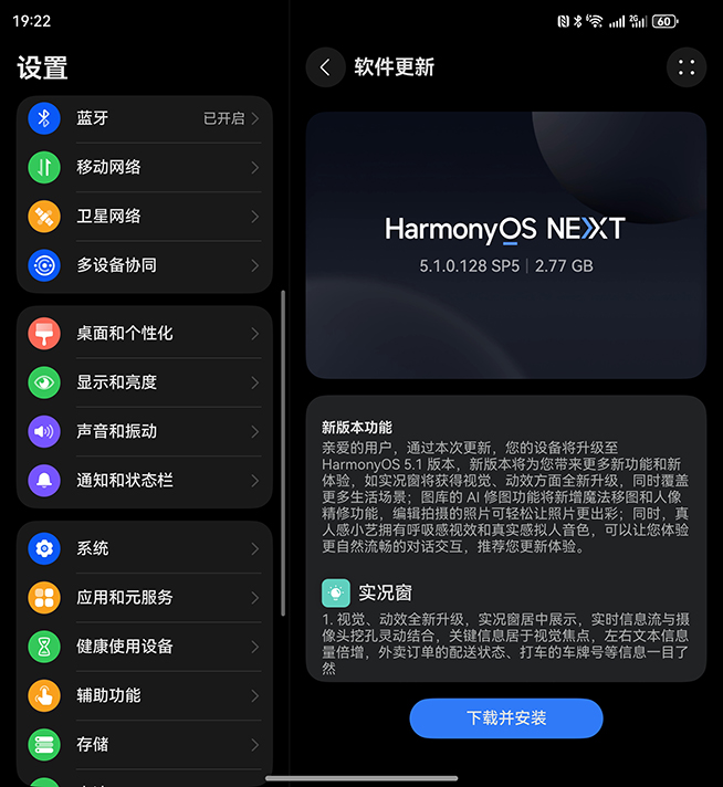 华为面向多款手机、平板和手表推送HarmonyOS 5.1系统更新,本人所使用的华为Mate X6也收到了此次鸿蒙5.1系统的OTA,升级包2.77GB, 带来丰富的新功能与新体验。下面简单介绍一些亮点升级。