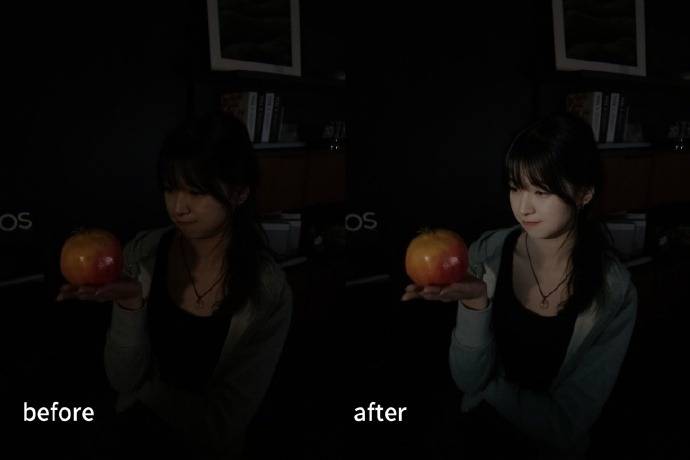 P1模拟的是-完全暗光的情况,AI人像补光功能会自动识别光线环境并匹配最佳补光方案,模拟“闪光灯”效果,突出细节。还自带一丢丢自然的美颜。