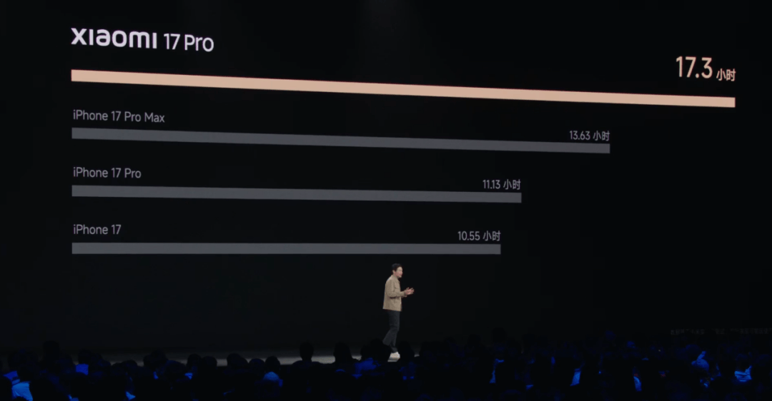 雷军表示,小米17性能接近iPhone17 Pro,散热也特别出色。