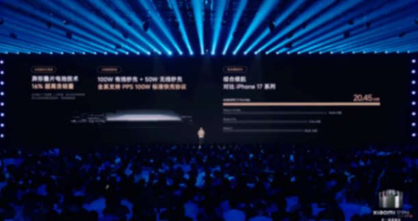 小米17Pro搭载6300mAh电池含量,机身薄至8mm,打造了小米史上最小主板;创新L形叠片结构,含硅量高达16%,续航创新高。