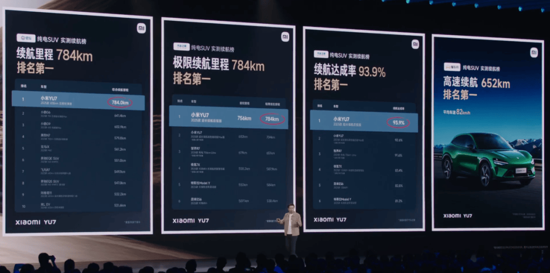 在实测续航方面,雷军表示,经过多家媒体实测,纯电SUV续航里程均排名第一。