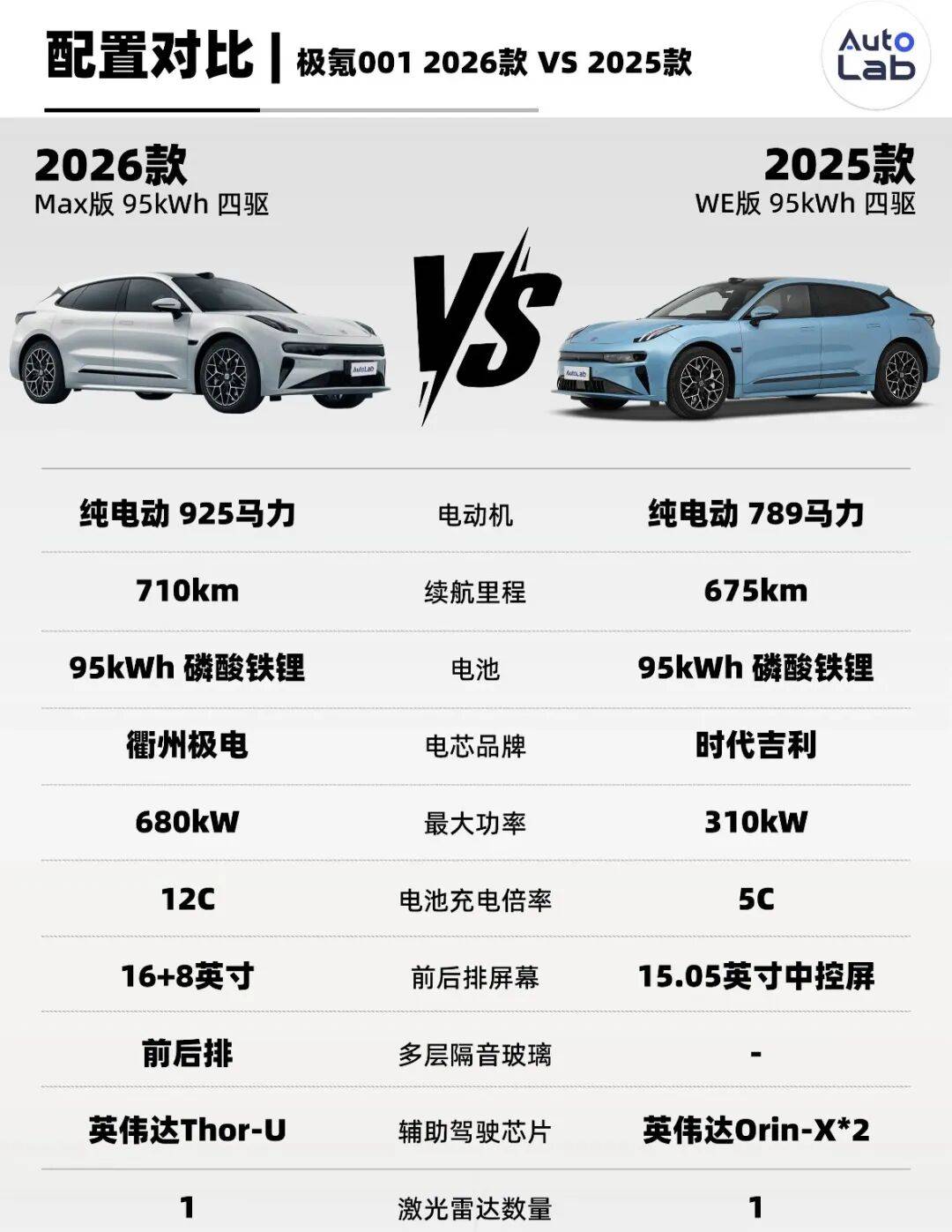 与老款相比,焕新极氪001价格基本持平,但按照现在的打法,价格持平,配置自然就不能持平了。