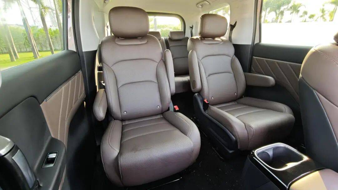 车内空间方面,二排座椅中央过道有230mm的宽度,保障了进出第三排的便利性,同时车内净高1200mm,对于小朋友来说,可以在停车休息时,在车内直立行走,对带娃出行更加便利。
