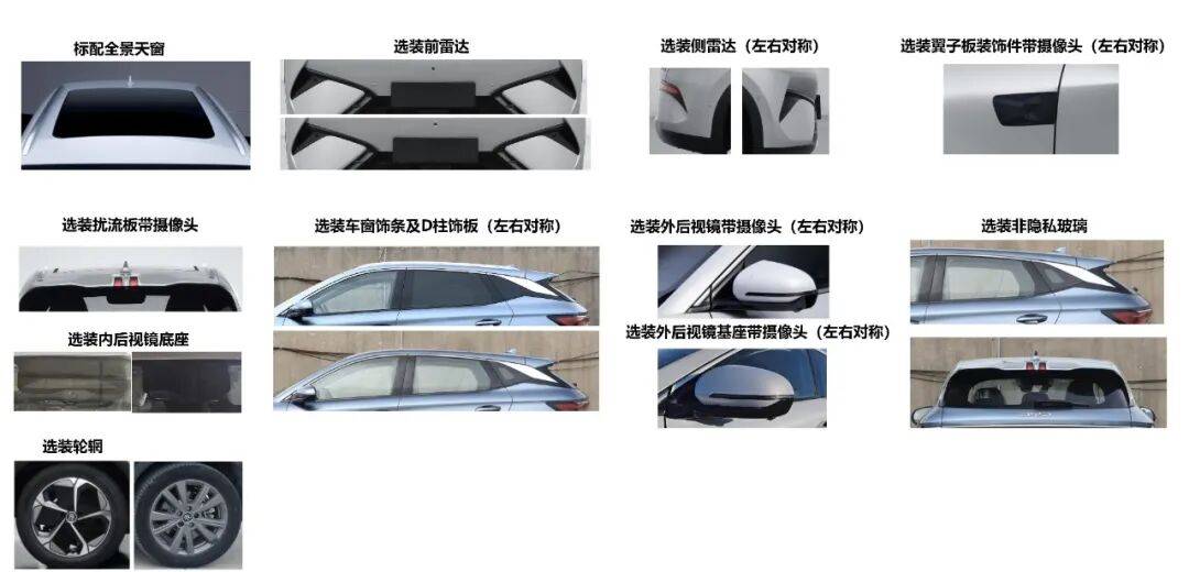 配置上,该车将标配全景天窗,并支持多项选装,如带摄像头的翼子板装饰件与扰流板、多种后视镜配置、车窗饰条、D柱饰板以及不同样式的轮辋等等,充分满足用户个性化需求。此外,用户还可根据需求选装ETC车载装置,进一步提升出行便利性。
