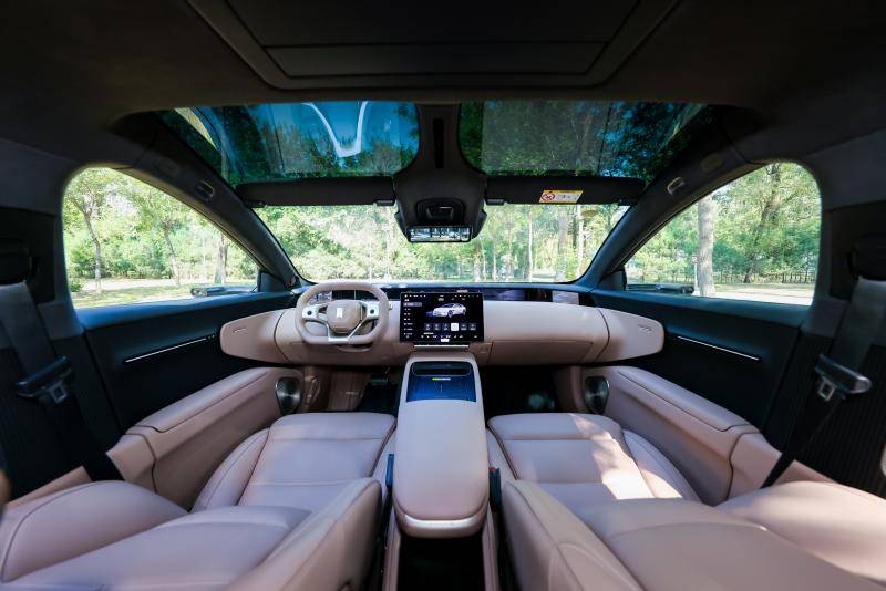 内饰则采用天然桦木饰板,营造出温暖、沉稳且富有呼吸感的座舱氛围。值得一提的是,阿维塔12还开创性地采用了无后舷窗设计,配合超清广角电子内后视镜,不仅提升了整车辨识度与私密性,更优化了后方视野与后备箱实用性,成为其美学语言中极具前瞻性的一笔。