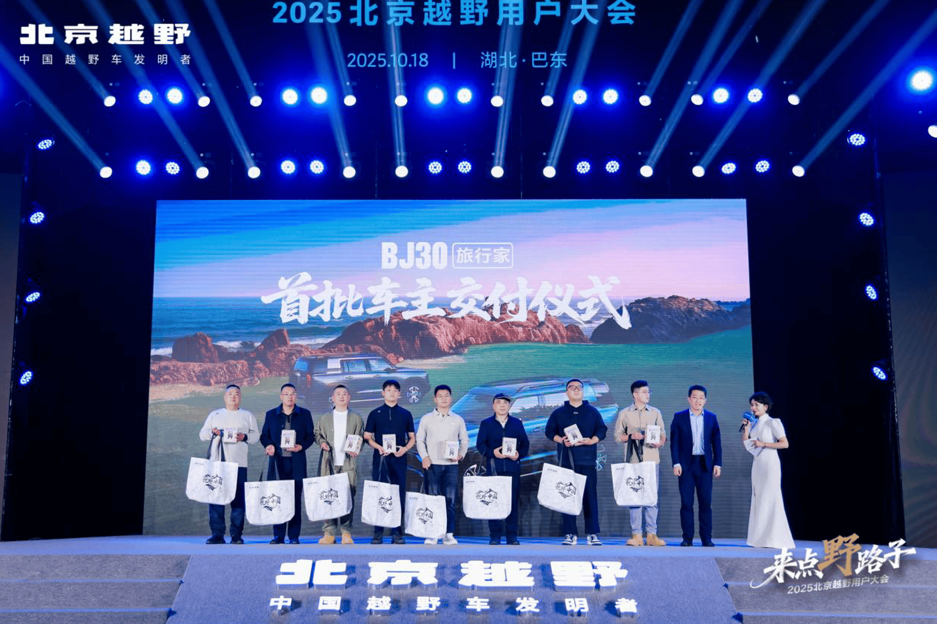 活动当天,高潮迭起,精彩不断。最让车主们激动的环节之一,就是首批BJ30旅行家的交车仪式。这些新车主人不仅拿到了爱车钥匙,还被授予了“BJ30旅行家全民代言人”的称号。这款新车人气超高,据说上市才一天,订单就超过了1.6万辆,成了现场的“人气王”。