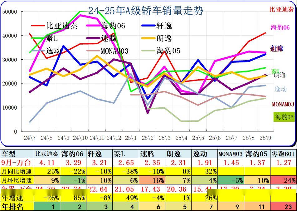 A0级轿车2025年9月批发16.19万台,占批发份额14.34%,批发较去年同期同比增长56%,批发环比今年上月增长12%;2025年9月零售较去年同期同比增长76%,零售环比今年上月增长26%。2025年1-9月批发数量113.45万台,厂家批发销售累计增幅73%;2025年1-9月国内零售数量76.81万台,零售累计增幅75%。