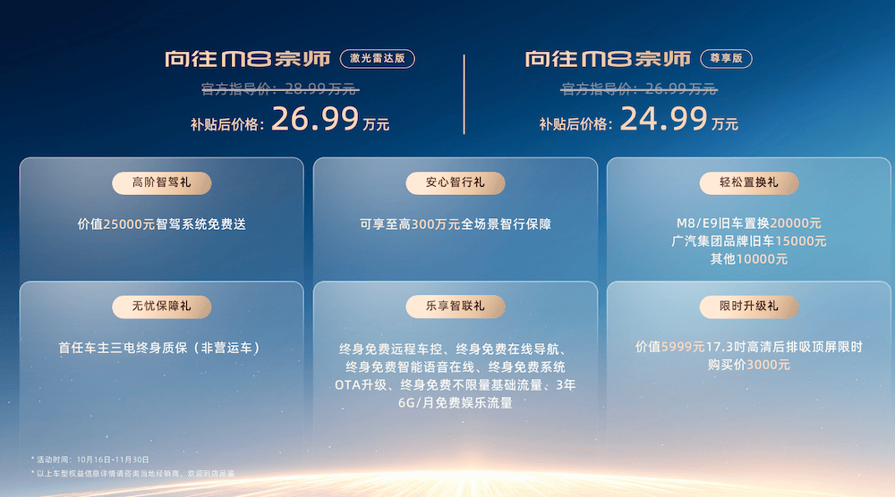 ▲向往M8宗师价格及上市权益