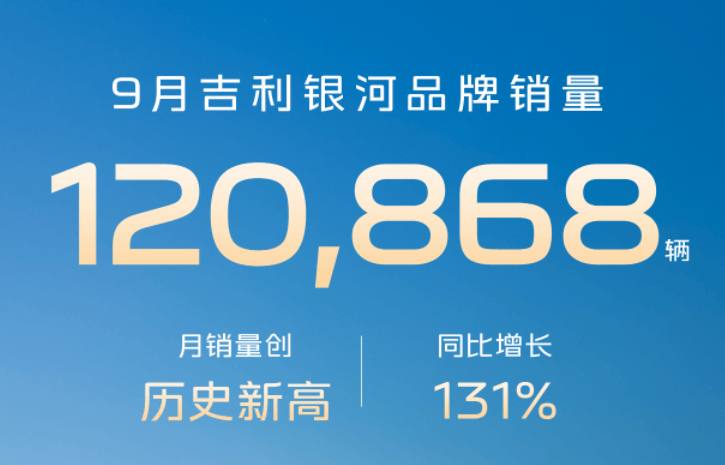 9月,吉利旗下新能源车型销量达到16.52万辆,同比增长81%,占到吉利品牌总销量的60%,其中,银河系列作为核心增长引擎,单月贡献12.09万辆。