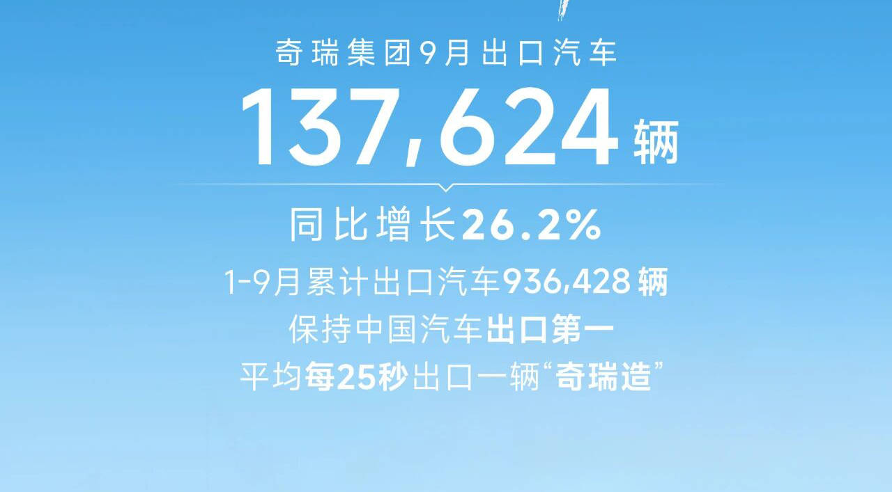 从当前市场格局来看,奇瑞与吉利的销量构成呈现明显不同。9月,奇瑞海外市场销量达 13.76万辆,同比增长26.2%,出口占比逼近50%;新能源汽车销量为 91590辆,同比增长55.4%。