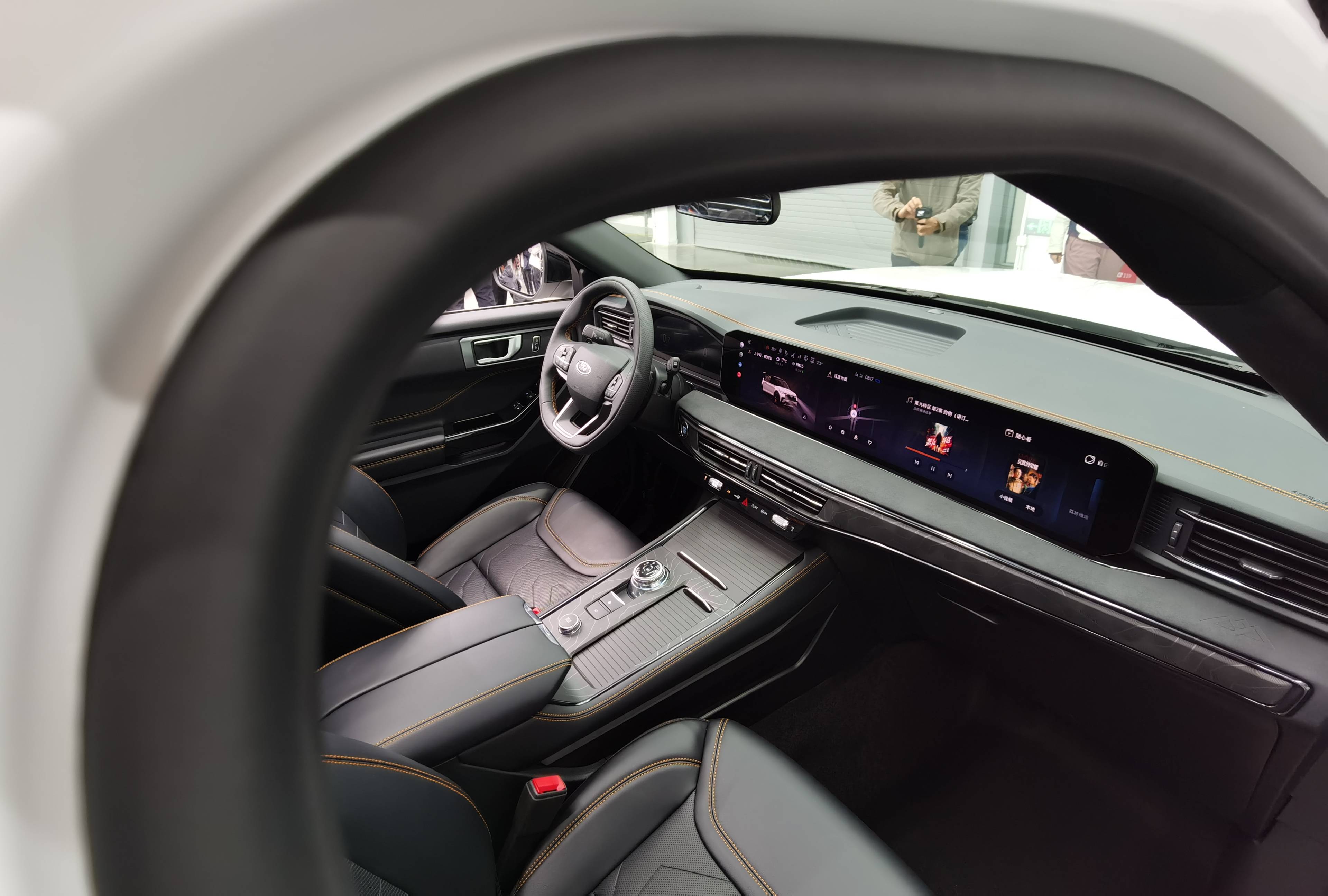 2.3T+10AT,大家都很熟悉了,把这套动力放到这CD6纵置后驱平台里,就变得不一样了。50:50配重比在SUV 中很少见,车长超 5 米轴距超 3 米,但探险者的转弯半径只有5.9米,和一台轿车差不多。