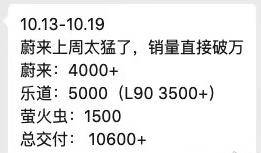 蔚来上周销量表现很强劲,达到了1.06万辆。具体来看,蔚来主品牌超过4000辆,乐道品牌超过5000辆,萤火虫品牌超过1500辆。