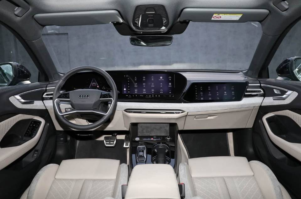 最后呢,还有智能座舱的升级,这方面看多了现在奥迪新车应该都不陌生,中控位置就是三块大屏,副驾娱乐屏也给了配齐了,还支持HUD抬头显示系统选装。
