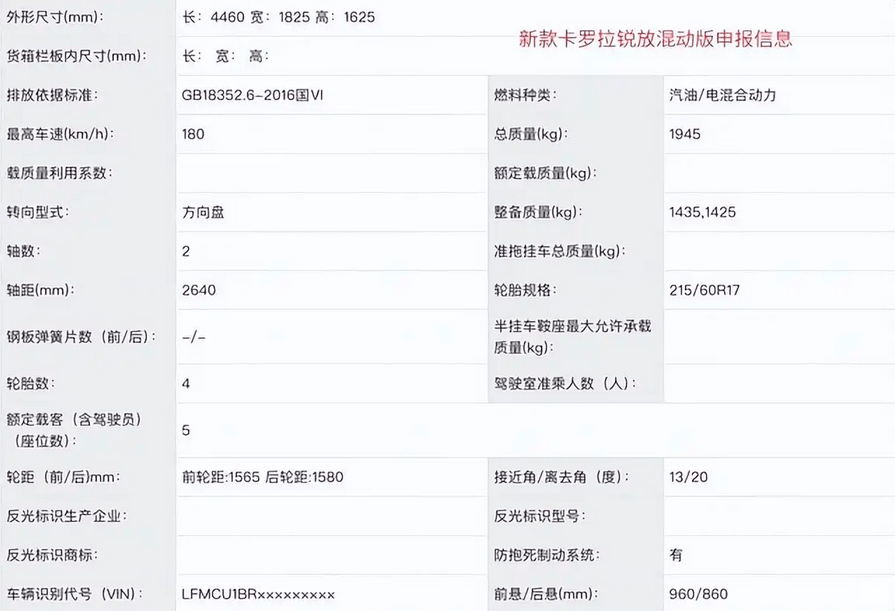 参考目前在售的卡罗拉锐放,其指导价格区间为12.98万-18.48万元,新款车型预计会维持相近的定价策略。