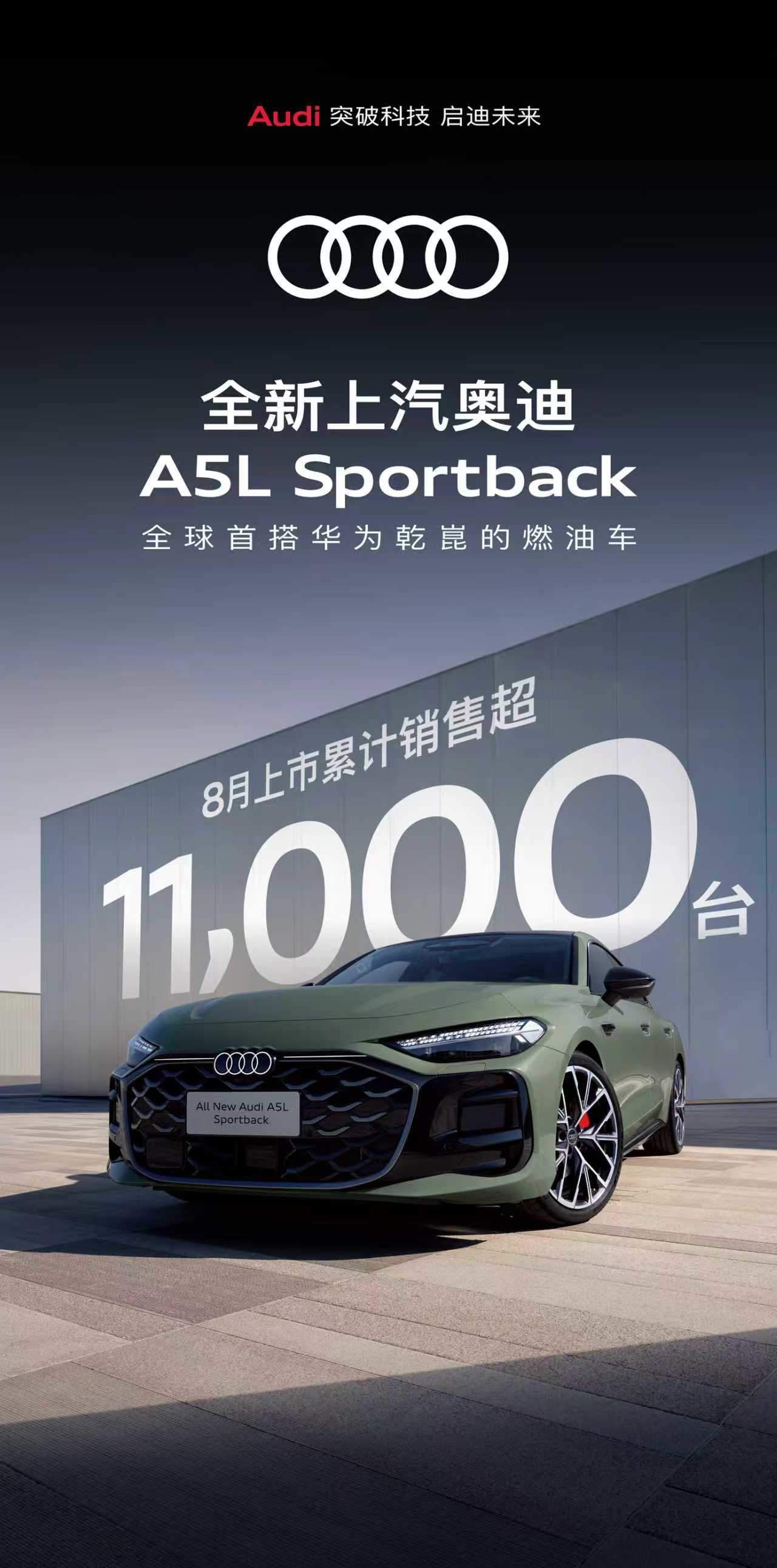 “豪华智慧性能轿车”全新上汽奥迪A5L Sportback自上市以来,凭借卓越的产品实力,迅速点燃市场热情。上市仅两个多月,累计销售超11,000台,这一亮眼成绩不仅充分印证了消费者对产品价值的高度认可,更为上汽奥迪品牌持续向上注入强劲动能。