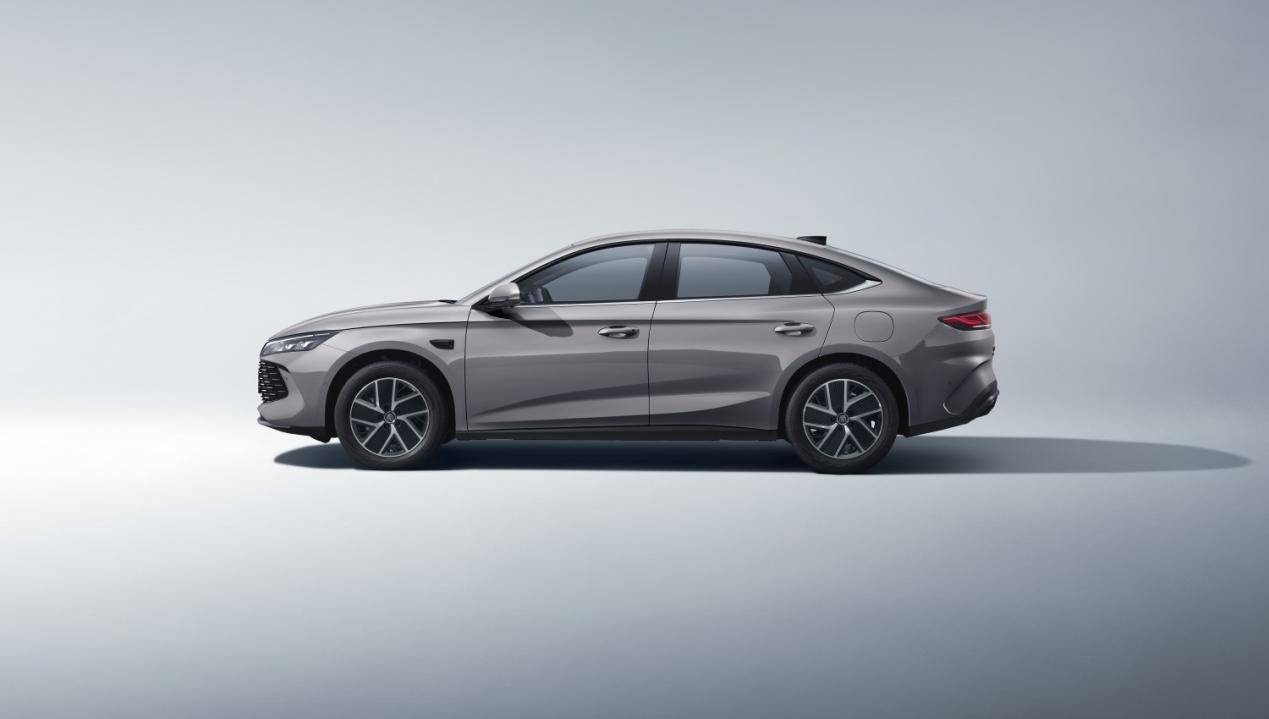 从侧面看,新车车身显得修长优雅、轮廓流畅,高挑的肩线自前车盖向后延伸,与一条自前翼子板下方向后延伸的腰线共同刻画出丰富的视觉效果,搭配大溜背,进一步凸显了整车的轿跑风味,而五幅式轮毂与整车低趴姿态的组合,也很好的融入了整车的运动氛围感。