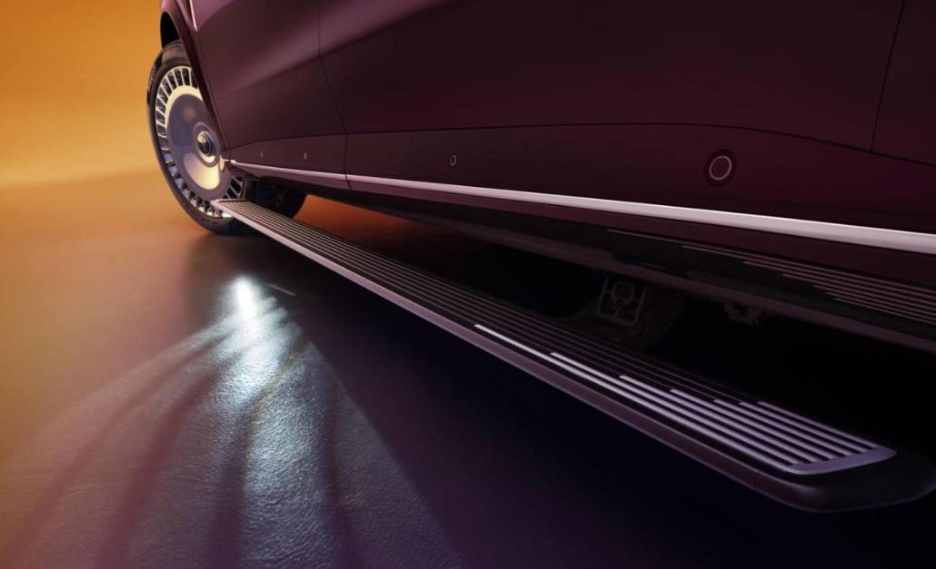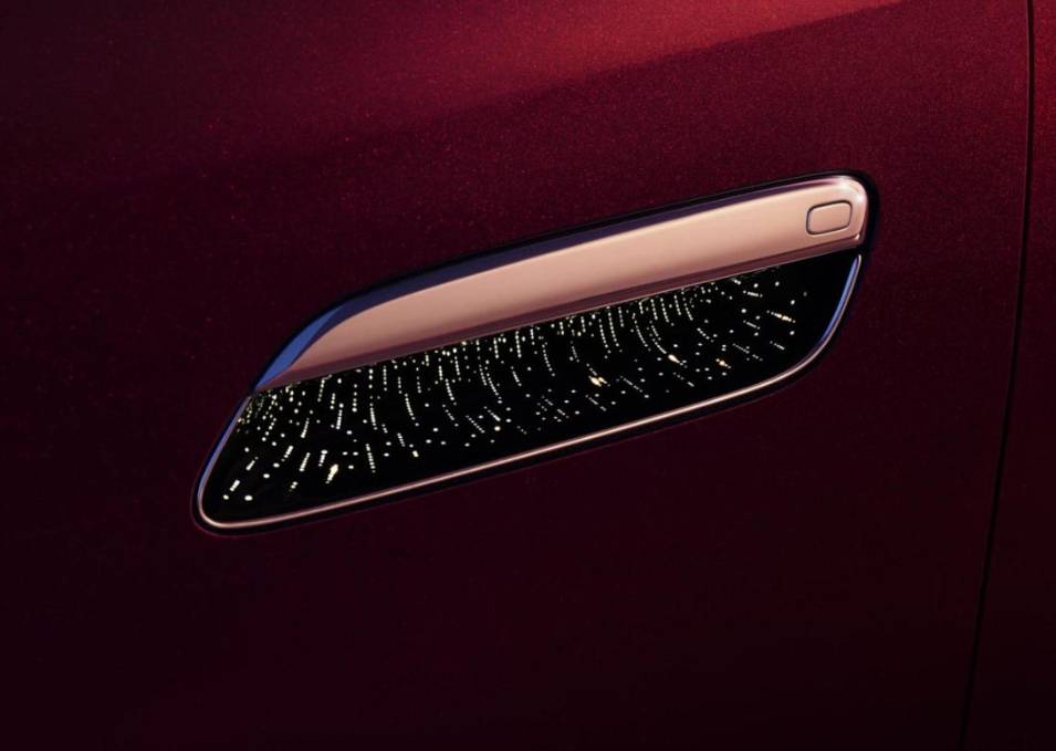 侧面来看,新车侧面造型较为圆润饱满,并且新车还可选装双色车身。此外,新车配备了半隐藏式车门把手,以及电动迎宾踏板,22英寸“大饼”式轮毂豪华感拉满,很有库里南的味道。车尾部分,新车采用熏黑的贯穿式尾灯组,点亮后极具辨识度。车身尺寸方面,新车长宽高分别为5230/2025/1817mm,轴距为3120mm。