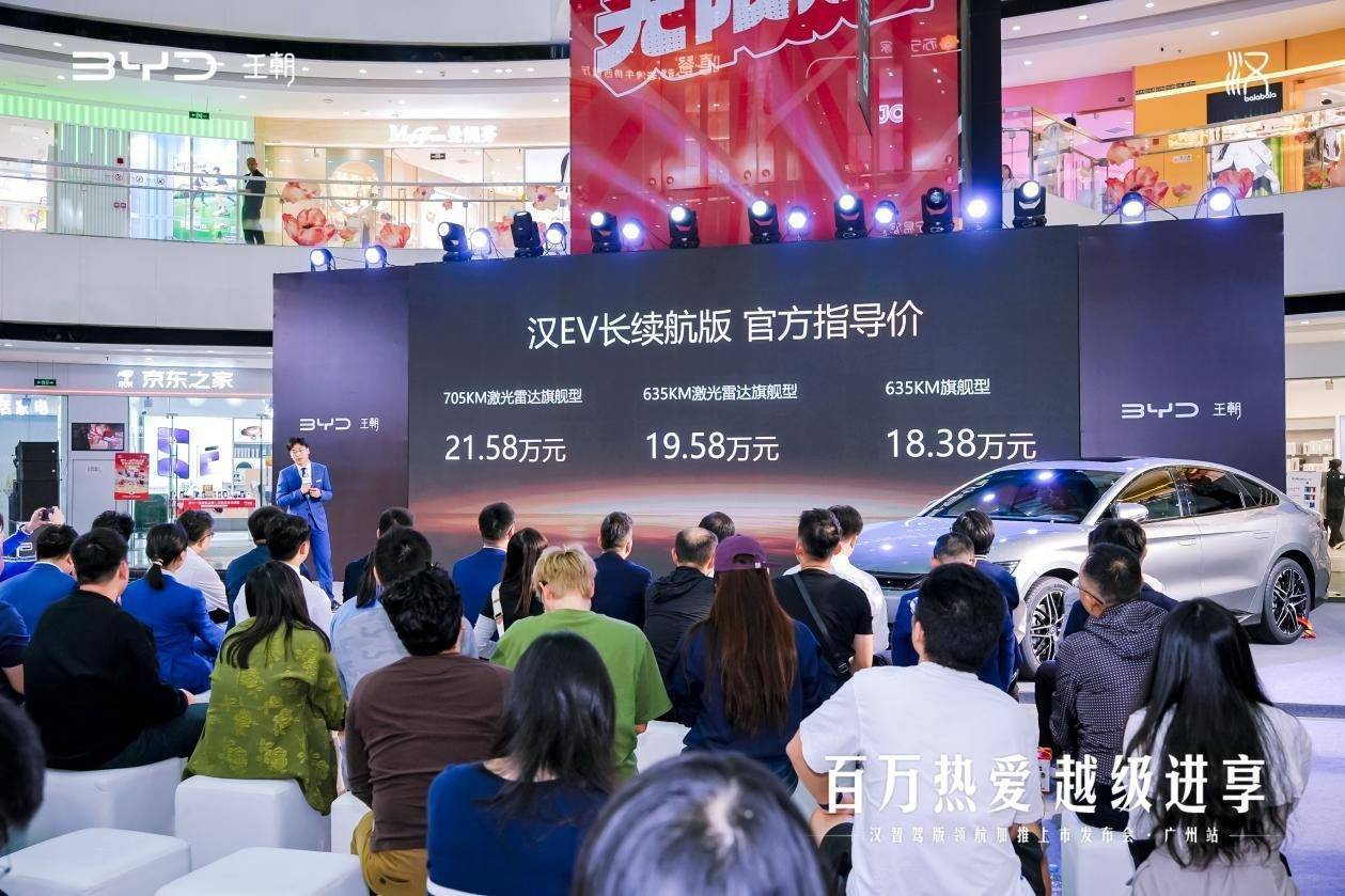 2025年10月24日,广州白云万达广场超吸睛!以“百万热爱 越级进享”为主题的比亚迪汉智驾版领航加推上市发布会热闹启幕。