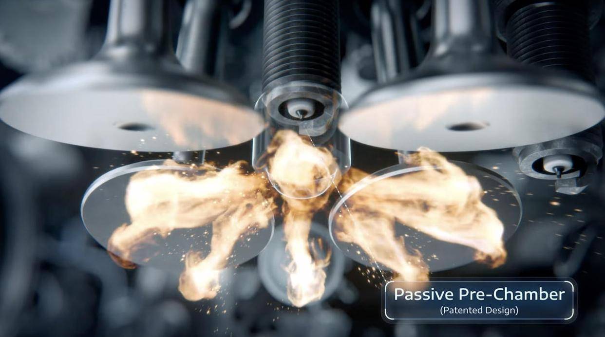 在每个气缸顶部,除了常规的燃烧室之外,还设有一个微型“预燃室”。这个小腔体内配有独立的点火火花塞与少量燃油。当空气与燃油在这个预燃室压缩并提前点燃后,燃烧产生的高能射流会通过小孔喷入主燃烧室,形成剧烈湍流,从而实现更彻底、更均匀的燃烧。简单来说,这就像用火柴去点燃木棒和用防风打火机点燃木棒的区别,打火机就是这个预燃室。