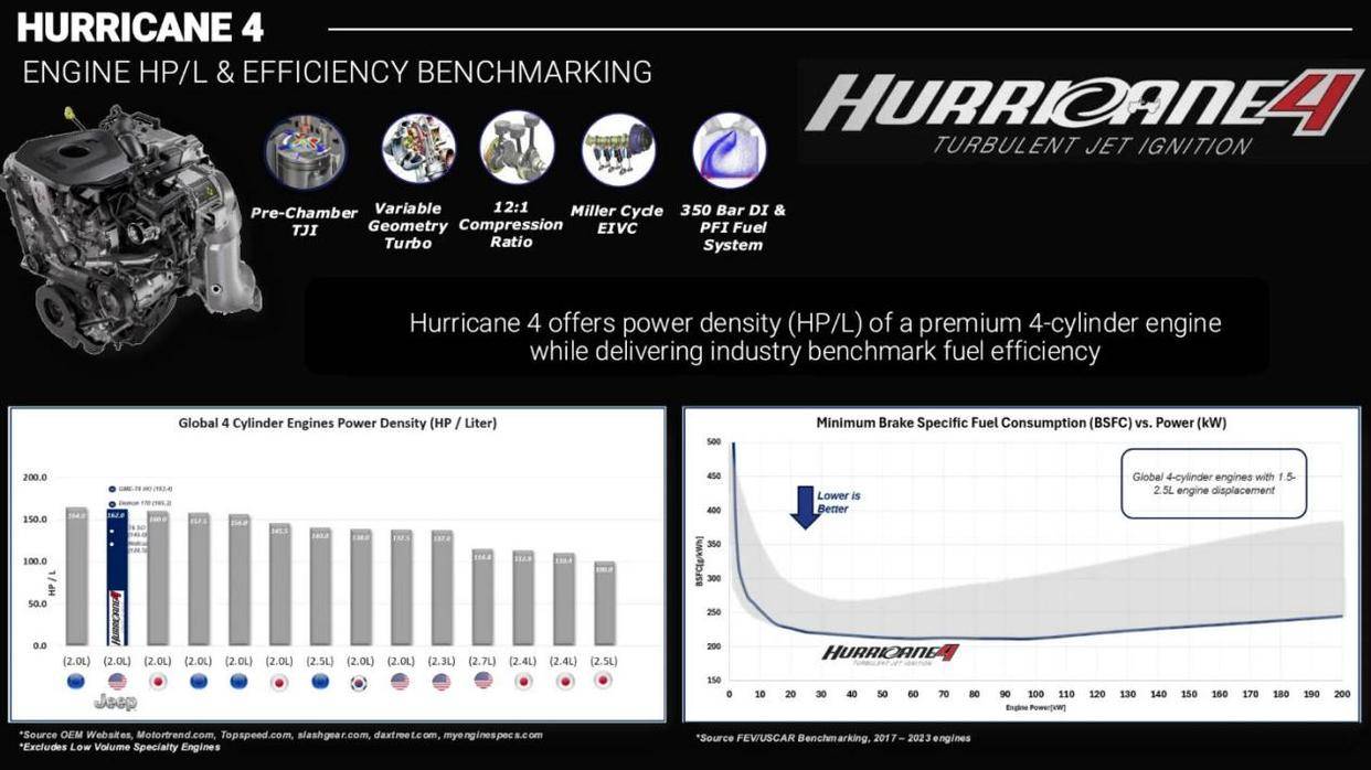 这款发动机的特殊之处在于四缸的结构,但是有8缸的燃烧系统和零部件,比如火花塞数量达到8个,命名为Hurricane 4 Turbo发动机,其核心技术是TJI湍流喷射点火,这是一种在F1上常见的燃烧系统。