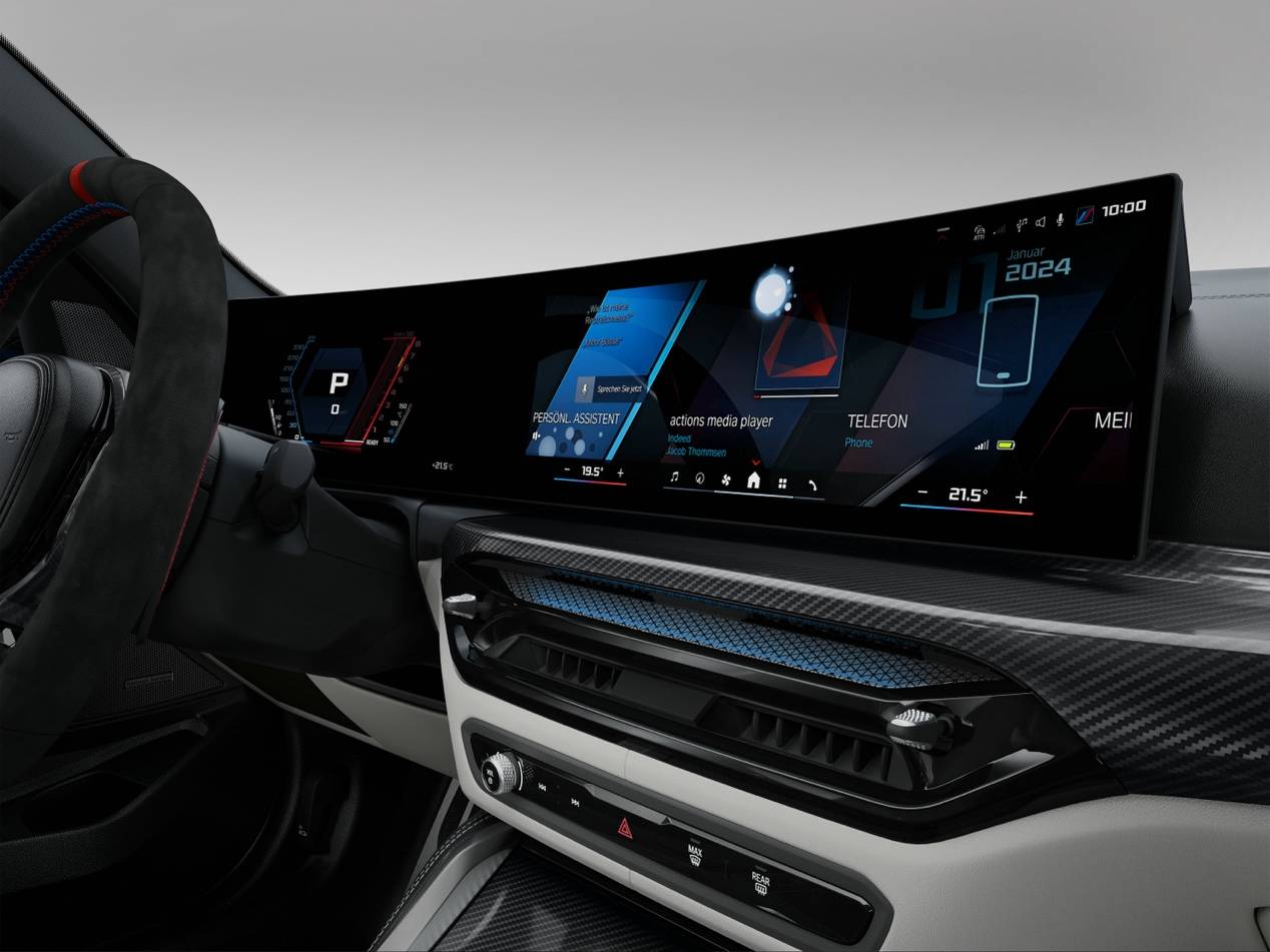 这种“不妥协”的理念,也渗透到车辆的每一个毛孔,体现在设计与功能的深度融合上。标志性的M横置双线型进气格栅,其首要任务是高效为发动机舱导入冷空气;车身宽体设计搭配高光黑色侧裙板,在强化肌肉美感的同时,也优化了空气流场。覆盖车身的碳纤维组件,包括多边形进气口、后视镜罩、尾部扩散器及车顶扰流板,其价值不仅在于轻量化和运动姿态的营造,更在于让空气流动更高效。甚至那双边四出的100mm排气尾管,也在彰显动力属性的同时,参与了整个排气系统的效能优化。在座舱内,M碳纤维座椅的目标是让轻量和舒适兼得,确保长途驾驶的惬意。这些细节共同表明,其设计逻辑是功能导向的,每一处“性能基因”都服务于最终的驾控体验与日常实用性,而非单纯的视觉点缀。
