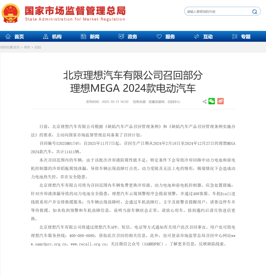 而理想也是作出了最快的危机公关反映,在没有确定最终起火原因的情况下,理想对同款车型进行了最快的召回处理,官方称2024款MEGA冷却液防腐性能不足,极端情况下会造成动力电池热失控,存在安全隐患。