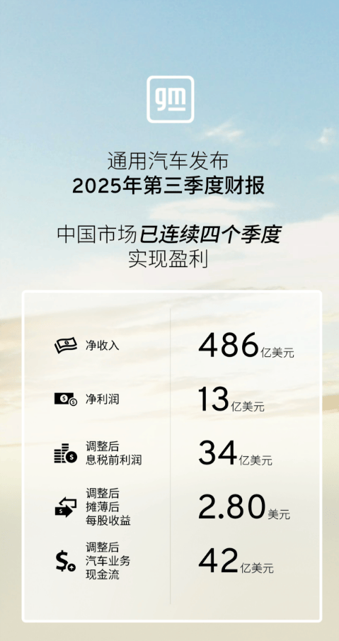 这一战略转变已反映在财务表现上。通用汽车第三季度净收入达486亿美元,净利润达13亿美元,调整后的息税前利润达34亿美元。通用汽车预计全年净利润将在77亿至83亿美元之间,调整后息税前利润预计为120亿至130亿美元。