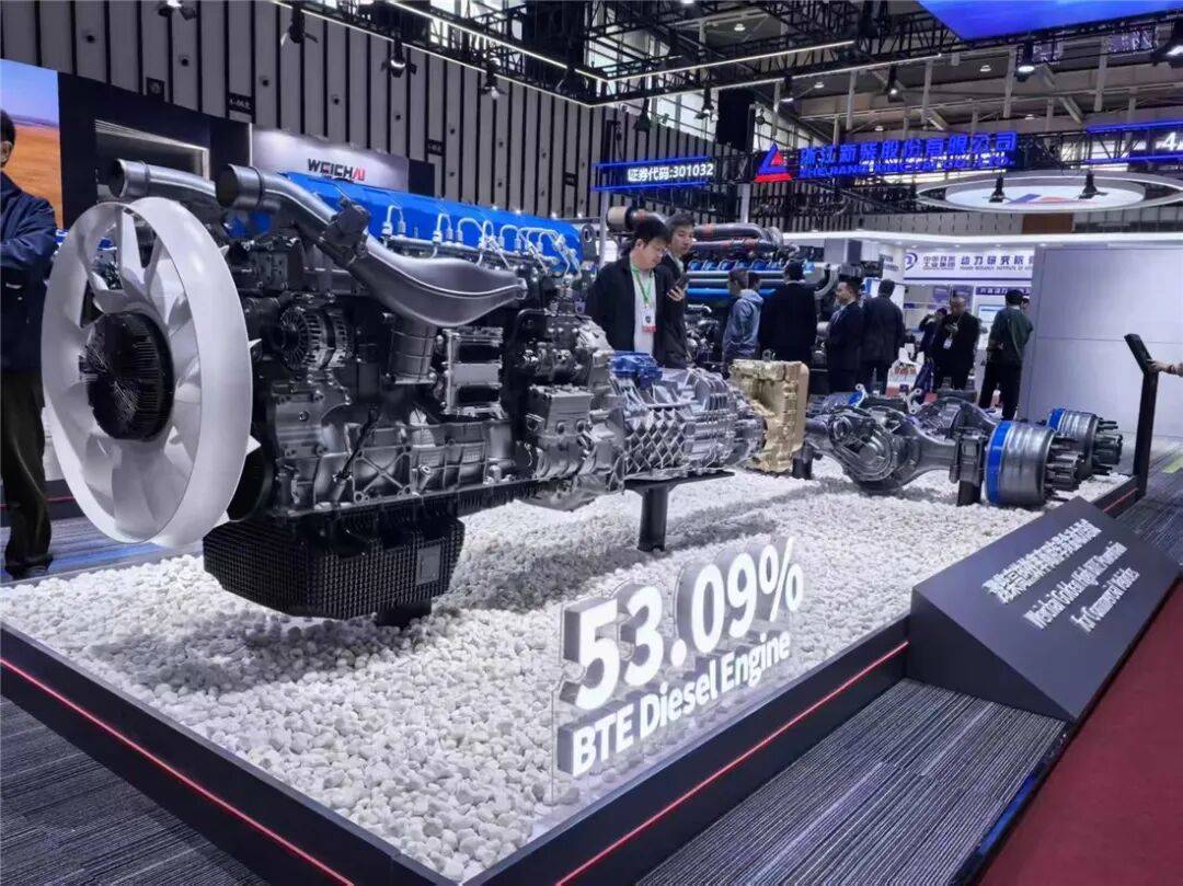 作为内燃机行业的领导者,潍柴高热效率商用车黄金动力总成位居展台C位,对于内燃机制造商来说,发动机如何与整车的传动系统去匹配,是内燃机百年以来一直在研发的课题,潍柴此次把53.09%高热效率的发动机与变速器、车桥所构建的黄金动力总成进行展示,展示了潍柴强大的技术创新能力。