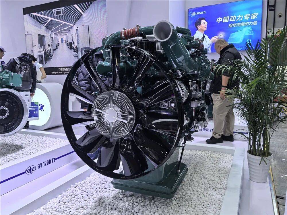 在解放动力展台,占据C位的就是全球首款智慧动力域GD300,这是一汽解放面向高端物流市场推出的柴油动力解决方案,以“智能、协同、自适应、数字孪生”为核心技术,整合发动机、变速器、驱动桥等硬件与智能软件系统,实现高效节能与全场景适配。动力域产品既反映了一汽解放在动传领域完备的产业布局,更体现了解放在智能、高效方面的技术优势和协同竞争力。